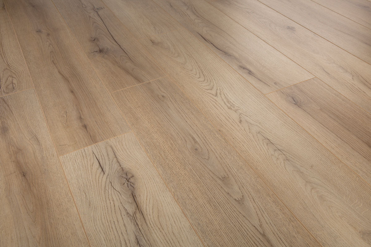 Milltown rustic sawmilled oak plank floating laminate flooring 12mm (by the case).